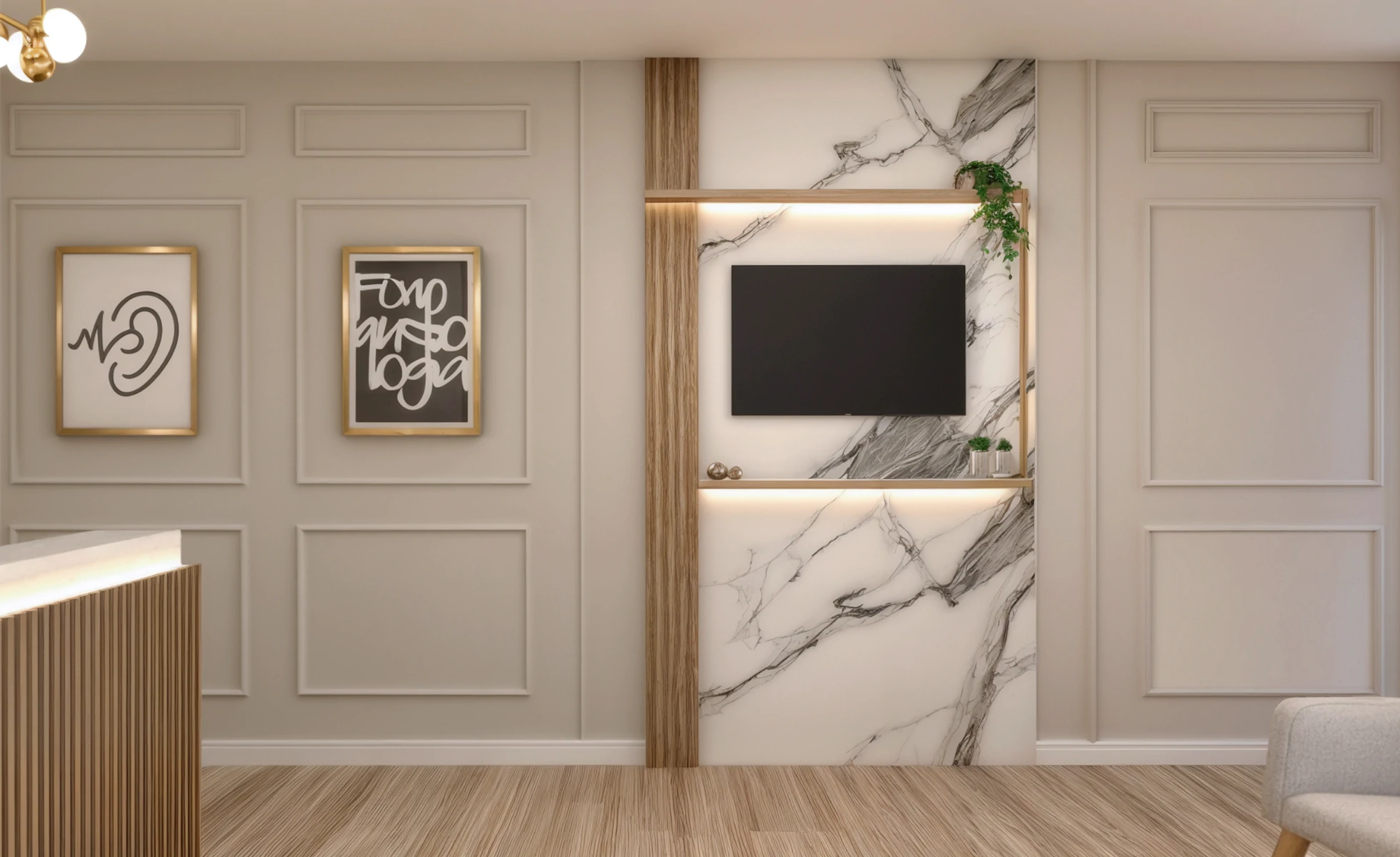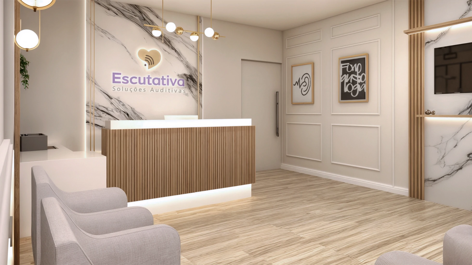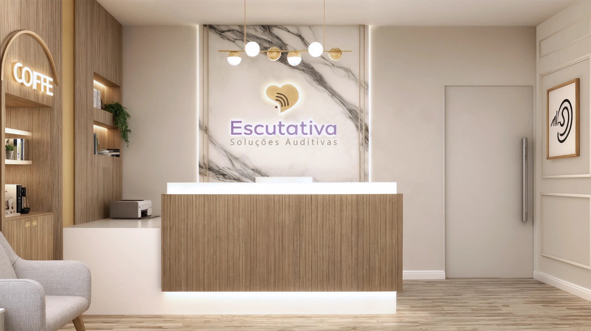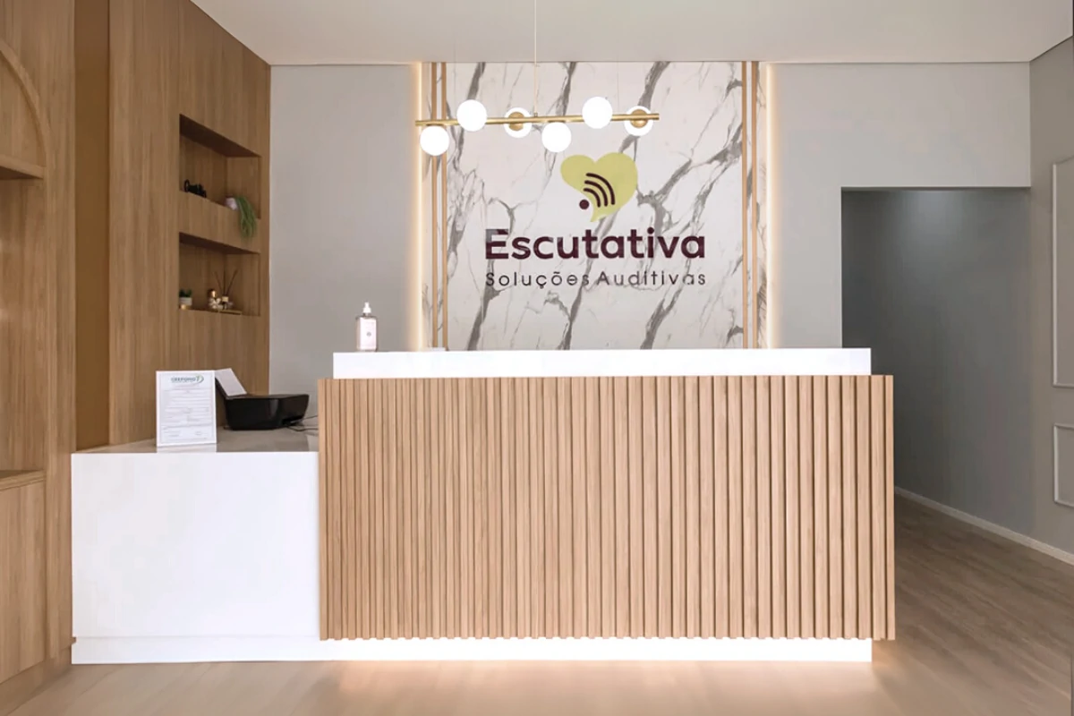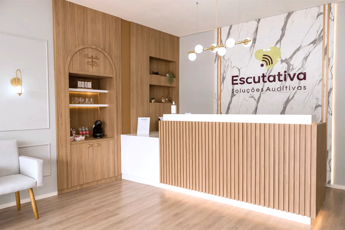 Mais do que um espaço funcional, esta clínica de reabilitação auditiva foi pensada para acolher. A arquitetura traduz a essência da marca, que carrega uma trajetória dedicada ao cuidado e à escuta atenta de cada paciente. A paleta neutra, os acabamentos em madeira e o mobiliário confortável criam um ambiente sereno e elegante, transmitindo segurança e bem-estar desde a recepção. Cada detalhe reforça a proposta de um atendimento humano e afetuoso.